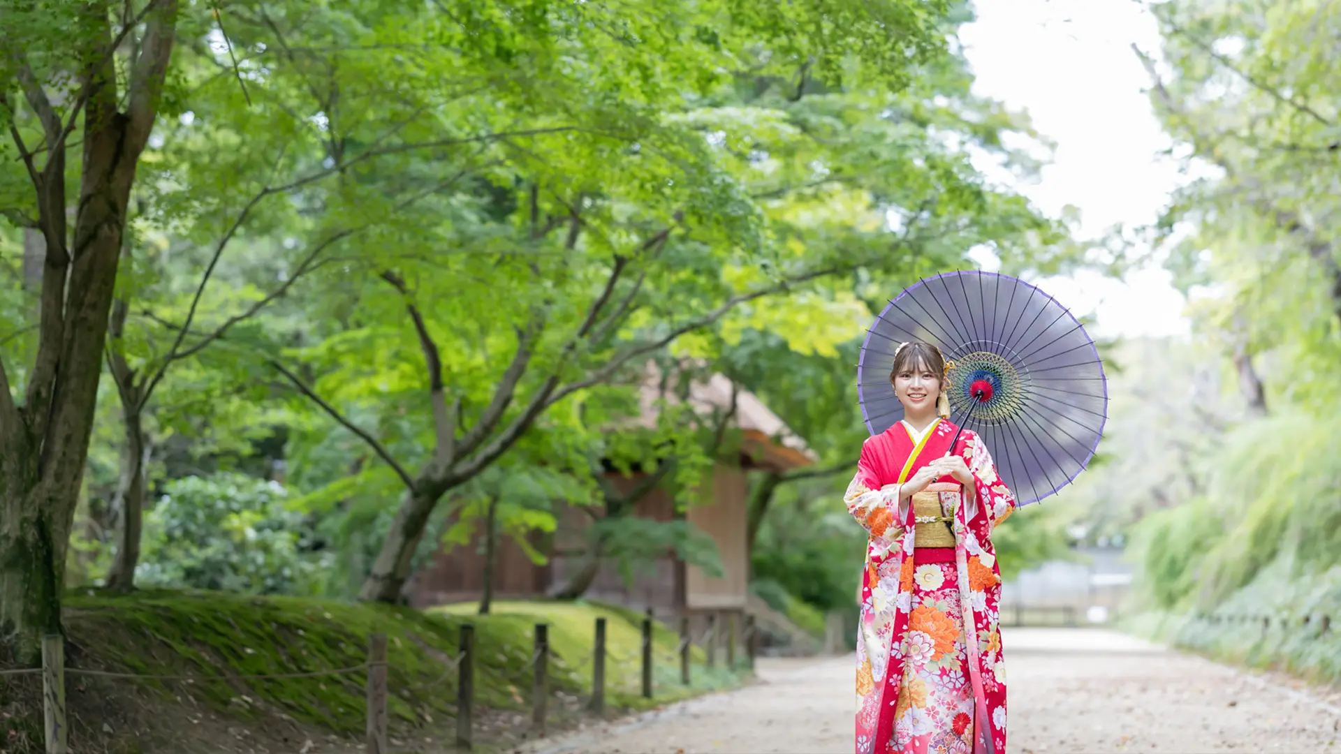 日本三名園の一つ。広大な敷地に美しい庭園が広がり、四季折々の風景が楽しめます。成人式の振袖前撮りに特に人気で、優雅で格式高い二十歳の記念写真を残せます。